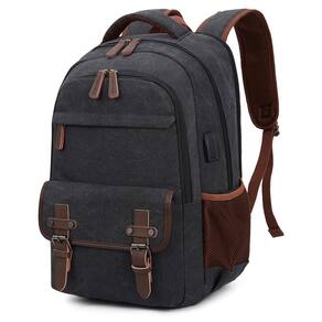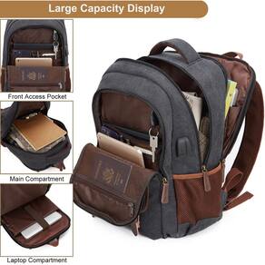 Mochila para laptop - Grande capacidade e organização: um compartimento separado para laptop comporta qualquer laptop de até 15,6 polegadas. Um compartimento espaçoso espaçoso para necessidades diárias, acessórios eletrônicos tecnológicos, produtos de higiene pessoal e muito mais. Compartimento frontal com muitos bolsos, bem como bolsos para caneta e um design de chaveiro para manter suas coisas organizadas e mais fáceis de encontrar. 2 bolsos laterais de malha para garrafas de água e guarda-chuvas. Tamanho: 47 x 31 x 21 cm; Capacidade de 30 a 35 litros. - Confortável e resistente: design traseiro acolchoado macio e confortável com acolchoamento ventilado de vários painéis espessos, mas macios, oferece o máximo suporte para as costas. Alças de ombro respiráveis e ajustáveis aliviam o desconforto do ombro. Alça superior acolchoada de espuma para um longo tempo de uso. - Porta USB e fone de ouvido: esta mochila para laptop tem porta USB externa com cabo de carregamento integrado que oferece carregamento conveniente do seu celular conectando seu próprio carregador portátil. A porta externa do fone de ouvido também oferece fácil acesso ao uso do fone de ouvido. (pacote com bateria não incluída). - Conveniente e seguro: uma alça de bagagem permite que a mochila se encaixe na bagagem, deslize sobre o tubo da alça vertical para facilitar o transporte. Com um bolso oculto antirroubo na parte de trás protege seus itens valiosos de ladrões. Um presente ideal para os pais, Ação de Graças, Natal, Dia dos Namorados. - Material durável: Feito de lona de alta densidade e acabamento de couro vegano; forro de poliéster (não resistente à água). A mochila também tem vários compartimentos embutidos, o que a torna perfeita para viagens, negócios, uso diário e atividades ao ar livre.