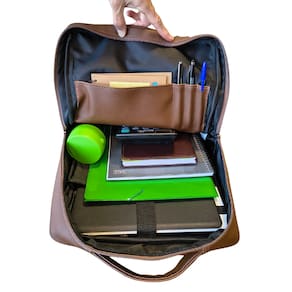 · Internamente possui bolsos para caneta e blocos e um compartimento acolchoado para acomodar o notebook (15,6 polegadas), além de espaço interno para cadernos, pastas, agenda e outros.