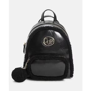 Mochila Pequena Guess Gina Sherpa Preta - Modelo Conversível Em material sintético Emblema do logotipo em metal dourado Bolso frontal com zíper Chaveiro pom removível Fecho de correr - 1 bolso interno com zíper Alça superior. Alças traseiras ajustáveis. Profundidade: 10 cm Altura: 24 cm Largura: 21 cm 100% autêntico. Marca: Não Informado