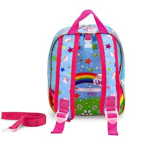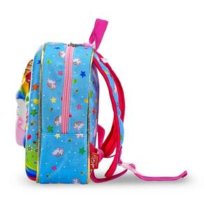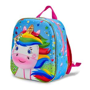 Confeccionada em EVA de alta qualidade e resistência, proporcionando um corpo rígido mas bastante flexível, processo patenteado e exclusivo. Não tem nada igual no mundo. Sistema de fechamento com zíper de qualidade. Seu interior possui um compartimento com uma malha elástica. Possui 2 alças de costas em nylon, com fivelas de ajuste em plástico, alça de mão em nylon na parte superior, superfície interna e externa impermeáveis, o que protege contra sujeiras e facilita a limpeza. Basta um pano úmido. Área de identificação onde pode ser colocado o nome da criança, o nome dos pais e telefones de contato.