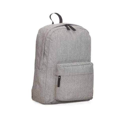 Mochila sem compartimento para notebook em tecido poliéster, com bolso frontal com zipér, além de alça de mão e de ombro.