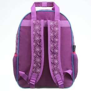Mochila de Costas Princesas G Dermiwil. Mochila com bolso principal e bolso frontal com fechamento em zíper. Bolsos laterais em tela. Alça de mão e costas. Composição produto: PVC e poliéster. Dimensão mochila: 40 centímetros (tamanho G).