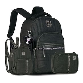 Com ainda mais versatilidade, o Kit Escolar Rebecca Bonbon é perfeito para estudantes que buscam praticidade sem abrir mão de estilo. A mochila RB27001 traz toda a sofisticação da coleção: nylon de alta qualidade com matelassê em estrela e coração, amplo espaço interno com compartimento acolchoado para notebook e tablet, dois bolsos frontais com zíper um deles com divisórias organizadoras , bolsos laterais telados e acessórios exclusivos como chaveiro pompom de coração, mascote em 3D, medalhinha de metal e cartela de adesivos personalizada. Suas alças acolchoadas e ajustáveis oferecem conforto, enquanto a alça de mão e a alça carona ampliam as formas de transporte. Dimensões aproximadas da mochila: 44x33x14cm. A lancheira RB27007 é o grande diferencial desse kit: modelo 2 em 1, pode ser Utilizado como lancheira transversal ou transformada em mochilinha para as costas. Além do design moderno com matelassê e cadarço logado, conta com revestimento térmico interno que mantém a temperatura dos alimentos, bolso frontal de fácil acesso, bolsos laterais telados e alça de mão superior para mais praticidade. Dimensões aproximadas da lancheira: 27x20x12cm. O estojo box RB27004 completa o conjunto com máxima funcionalidade. Confeccionado em nylon, oferece 36 elásticos para organização dos lápis, compartimento interno extra com zíper e espaço para até 100 canetas e lápis. Dimensões aproximadas do estojo: 22x16x6cm. Um kit completo, resistente e sofisticado, pensado para tornar o dia a dia escolar mais organizado, prático e cheio de estilo com o charme único da Rebecca Bonbon. Marca: Não Informado Ean: 7795028748692