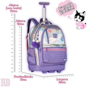 Mochila Rebecca Bonbon Rodinhas Holográfica Infantil Meninas - Clio Style Bonjour, minhas fashionistas Preparem-se para embarcar em uma jornada de estilo, elegância e doçura, diretamente das charmosas ruas de Paris para o vibrante coração de Nova York. Este é o universo de Rebecca Bonbon, onde cada detalhe é um convite para viver a vida com muito glamour e sofisticação. Já imaginou ter um pedacinho desse mundo encantador, que exala bom gosto e personalidade, sempre com você Cada item que você encontra aqui é uma extensão do estilo de vida de Rebecca Bonbon. É a sua oportunidade de se conectar com a cachorrinha francesa mais chique do planeta, de sentir a inspiração da moda e a alegria dos doces em cada momento do seu dia. Ao escolher a Mochila Rebecca Bonbon Rodinhas Holográfica Infantil Meninas, você não está apenas adquirindo um produto; você está se tornando parte de um clube exclusivo, onde o charme e a originalidade são as palavras de ordem. Mostre ao mundo o seu lado mais fashion e sofisticado Características Mochila: - Alça Retrátil para Transporte - Descanso Frontal em PU - Bottons Coloridos Customizados - Bolsos Laterais para Garrafas - Bolsos Frontais Utilitários - Cores Modernas e Vivas - Zíper com Puxadores Personalizados - Estrutura do Carrinho em Alumínio - Chaveiro Exclusivo RB com Pompom - Painel da Mochila Holográfico Especificações Mochila: - Marca: Clio Style - Material: Poliéster - Medidas Aprox. axlxp : 48cm x 35cm x 19cm - Tema: Rebecca Bonbon - Cor: Lilás - Capacidade Aprox. litros : 32 litros - Estilo do tecido: Liso Holográfico com Matelassê Conteúdo da Embalagem: - RB27016 - 1x Mochila Rebecca Bonbon Rodinhas Holográfica Infantil Meninas - Clio Style As cores podem variar entre as imagens mostradas acima e o produto. Imagens meramente ilustrativas. Todas as informações divulgadas são de responsabilidade exclusiva do fabricante. de 90 dias contra defeito de fabricação. Marca: Não Informado