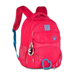 A mochila RB27015 é confeccionada em material soft com matelassê de corações, trazendo uma aparência moderna e delicada. Conta com compartimento principal espaçoso, bolsos frontais com zíper, bolsos telados laterais, bolso antifurto traseiro e alça carona para acoplar em malas. As alças acolchoadas e ajustáveis garantem conforto, e os detalhes personalizados, como plaquinha de metal, cadarço acetinado, mascote 3D, chaveiro de miçangas e corrente com coração emborrachado, fazem toda a diferença.