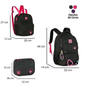 O Kit Escolar Rebecca Bonbon RB27015 é pura elegância, estilo e praticidade Ideal para acompanhar a rotina escolar com muito charme, o conjunto é composto pela Mochila de Costas RB27015, Lancheira RB27011 e Estojo RB27013, todos com design encantador e acabamento premium.