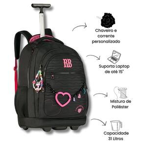 Mochila Rebecca Bonbon Rodinhas Juvenil Escolar Mala Preto
