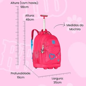 Mochila Rebecca Bonbon De Rodinhas Juvenil Escolar Mala Teen - Clio Style A Mochila Rebecca Bonbon é perfeita para meninas que buscam praticidade e estilo. Feita com materiais de alta qualidade, essa mochila de rodas é resistente e espaçosa, ideal para carregar livros, cadernos e outros itens escolares. Possui compartimentos bem organizados, alças convenientes e acolchoadas para maior conforto, além de um design moderno e delicado, com detalhes que encantam. Características Mochila: Alça de mão e costas Bolsos laterais telados Bolso interno para lápis e caneta Chaveiro e corrente personalizado Mascote em 3D Forro rosa logado Puxador personalizado Zíper tratorado Cadarço acetinado logado Placa de metal colorida Proteção para asas e rodas Especificações Mochila: Marca: Rebecca Bonbon Medidas Aproximadas Mochila A x L x P : 48cm x 35cm x 19cm Altura com a haste levantada: 98cm Aprox Peso: 2.022kg Aprox Capacidade: 31L Composição do produto: Poliéster Polegadas: 19 Compartimento para Notebook: 15 Conteúdo da Embalagem: Rb27009 - 1 Mochila de Rodas Rebeca Bonbon As cores podem variar entre as imagens mostradas acima e o produto. Imagens meramente ilustrativas. Todas as informações divulgadas são de responsabilidade exclusiva do fabricante. de 90 dias contra defeito de fabricação. Marca: Não Informado