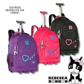 Mochila Rebecca Bonbon De Rodinhas Juvenil Escolar Mala Teen - Clio Style A Mochila Rebecca Bonbon é perfeita para meninas que buscam praticidade e estilo. Feita com materiais de alta qualidade, essa mochila de rodas é resistente e espaçosa, ideal para carregar livros, cadernos e outros itens escolares. Possui compartimentos bem organizados, alças convenientes e acolchoadas para maior conforto, além de um design moderno e delicado, com detalhes que encantam. Características Mochila: Alça de mão e costas Bolsos laterais telados Bolso interno para lápis e caneta Chaveiro e corrente personalizado Mascote em 3D Forro rosa logado Puxador personalizado Zíper tratorado Cadarço acetinado logado Placa de metal colorida Proteção para asas e rodas Especificações Mochila: Marca: Rebecca Bonbon Medidas Aproximadas Mochila A x L x P : 48cm x 35cm x 19cm Altura com a haste levantada: 98cm Aprox Peso: 2.022kg Aprox Capacidade: 31L Composição do produto: Poliéster Polegadas: 19 Compartimento para Notebook: 15 Conteúdo da Embalagem: Rb27009 - 1 Mochila de Rodas Rebeca Bonbon As cores podem variar entre as imagens mostradas acima e o produto. Imagens meramente ilustrativas. Todas as informações divulgadas são de responsabilidade exclusiva do fabricante. de 90 dias contra defeito de fabricação. Marca: Não Informado