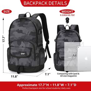 Uma mochila para todas as suas necessidades de organização, ideal para escola, trabalho ou viagens de um dia curto - Espaço de armazenamento flexível e amplo com design de layout científico e razoável na bolsa conveniente portátil da Ricky-H torna muito mais fácil sair pela porta pela manhã. O layout com vários bolsos permite pequenos itens (por exemplo, Telefone, canetas, chaves, carregadores, carregador portátil, óculos de sol, etc.) e itens grandes (por exemplo, Laptop, fichários A4, livros didáticos, caderno, lancheira, suéter, toalha, etc.) sendo organizado ordenadamente. - Ocasiões adequadas: escola, viagens, acampamento, caminhadas, academia, escritório, presente, versátil. Seja para atender à sua base de organização diária ou seus usos "extracurriculares", nossa mochila é versátil o suficiente para muitos usos, para ser uma bolsa de livros durante a semana e uma mochila de viagem nos fins de semana. Ótima escolha como mochila escolar ou mochila para o dia a dia. Ou até mesmo como bolsa de fraldas. - Pessoas aplicáveis: homens, mulheres; estudantes universitários/universitários, ensino médio, ensino fundamental, meninos e meninas da escola primária; pais, etc.) - Conforto com alças de ombro reforçadas acolchoadas ajustáveis e ergonômicas, faz com que a mochila use o dia todo como uma brisa. - O tecido de nylon de alta qualidade, forte e de longa duração constrói nossa mochila robusta e sólida com ótimo desempenho em resistência à água, anti-impacto e anti-arranhões. - Zíperes duplos de metal com abas de tecido para manter a água fora da mochila e durar muito mais do que os de plástico. Fácil de abrir e fechar a mochila. A costura dupla em pontos de tensão adiciona segurança valiosa às costuras, alças e alças, melhorando a durabilidade. E a alça superior adicional oferece ajuda extra ao levantar ou mover a mochila. *Observações: 1. Diferenças de 1,2 a 2,5 cm podem ocorrer devido à medição manual. 2. A cor do item exibida nas fotos pode variar ligeiramente do produto real devido às configurações de cor do monitor. ? Idade: a partir de 8 anos - ? Espaçosa com estilo -- Expresse-se com as estampas legais de grafite. Esta espaçosa mochila leve (450 g) tem capacidade para até 25 litros - ? Vários compartimentos -- Ordene seus itens sistematicamente com 1 compartimento principal grande, 1 capa para laptop, 1 bolso interno de malha. Armazenamento seguro e fácil acesso aos bolsos laterais (2 compartimentos + 2 com zíper) e bolso frontal (1 zíper + 1 aba com fita de fecho aderente) - ? 1 pacote para todas as ocasiões – nunca se preocupe com qual bolsa levar novamente com esta excelente mochila fácil de combinar com tudo, para uso diário, escola, deslocamento, escapadela de fim de semana, caminhadas curtas, acampamento e muito mais - ? Design ergonômico – você merece uma bolsa confortável e leve, construção com design ergonômico, alças acolchoadas macias e ajustáveis, torna o transporte muito fácil - ? Idade: a partir de 8 anos