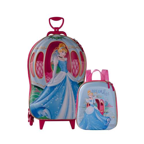 Kit Mochila Rodas Princesa Cinderela Carruagem Lancheira Escolar 3D - Maxtoy