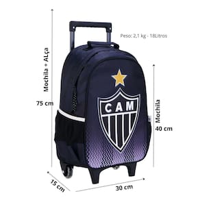 Leve toda a paixão pelo Galo para a escola com esta mala escolar de carrinho de 16 polegadas feita especialmente para os pequenos torcedores mais fanáticos Principais características: - Alças acolchoadas e ajustáveis que garantem conforto e encaixe perfeito nas costas. - Protetor de hastes acolchoados para as costas, permitindo diferentes formas de uso deste modelo - no chão com as rodinhas ou nas costas. - Rodas em gel: deslize com facilidade e conforto em qualquer superfície, sem barulho e com alta durabilidade. - Hastes achatadas com auto regulagem: ajuste a altura do carrinho conforme sua necessidade para maior conforto ao puxar. - Tira de mão forrada: pega macia e segura para você carregar a mala com facilidade quando preferir. - Zíper com dentes de nylon e capa cobre zíper: resistência extra e proteção contra chuva e sujeira. - Puxadores de zíper em corda: design pensado para facilitar a pegada e agilizar a abertura e fechamento dos compartimentos. - Bolsos laterais em tela: ideais para garrafinhas de água, mantendo você sempre hidratado. - Logo do Atlético Mineiro em patch de PVC com detalhes vincados: destaque esportivo e autêntico que garante o estilo da sua torcida. - Estampa e forro personalizados: tudo com a cara do Alvinegro Mineiro para você mostrar seu amor pelo clube em cada detalhe Perfeita para acompanhar os jogos e os estudos com muito estilo e praticidade. Faça seu dia a dia mais leve e cheio de energia com a mala oficial do Galo Dimensões: - Largura: 30cm - Altura: 40cm - Comprimento: 15cm Peso: 1180gr Cuidados: - Guarde em um local seco e arejado evitando locais úmidos. - Evite colocar excesso de peso no produto para não forçar os zíperes e costuras. - Proteja os objetos cortantes e/ou pontiagudos evitando o contato direto com o produto. - Evitar altas temperaturas. - Cores claras poderão manchar quando em contato com outros objetos ou roupas de cores pigmentadas. Marca: Não Informado Ean: 7899768873543