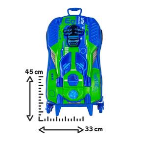 Características: - Termoformadas em 3D - Impermeável e de fácil limpeza - Leve e de alta resistência - Mochila com 3 rodas de cada lado para auxiliar em escadas e calçadas - Turbinas e motores realistas cromados - Rodas Realistas - Lancheira com alça guia removível