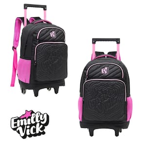 Destaques: - Estampa exclusiva da Emilly Vicky - Rodas resistentes e haste retrátil para facilitar o transporte - Alça de mão e alças de costas ajustáveis - Compartimento amplo para materiais escolares ou itens de passeio