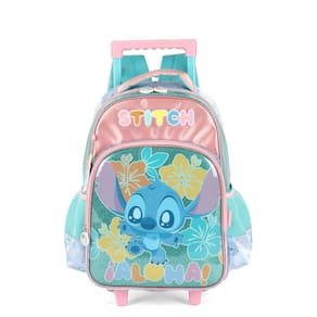 Mochila rodas escolar infantil stitch disney ic42402sc Cor: turquesa Mochila rodas escolar infantil stitch disney luxcel ic42402sc Mochila juvenil com rodas e alça de costas. Possui repartição com fechamento em zíper, bolsos frontais e laterais, alça de mão, puxador em aluminio e alças ajustáveis nas costas. Tamanho: 41x30x14 cm axlxp Material: poliéster e pvc.