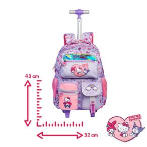 Conteúdo da Embalagem: 15430 - 1 Mochila de Rodas Hello Kitty and Friends 15434 - 1 Lancheira Hello Kitty and Friends 15437 - 1 Estojo Box Hello Kitty and Friends