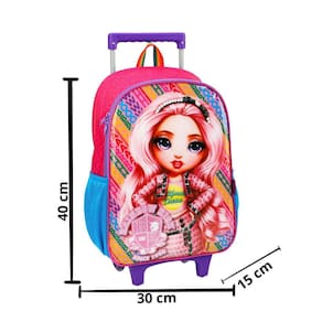 A mochila de rodas do Kit Escolar Rainbow High Rosa possui uma divisão grande, ideal para armazenar livros, cadernos, estojos e demais objetos escolares. Não possui compartimentos internos adicionais.