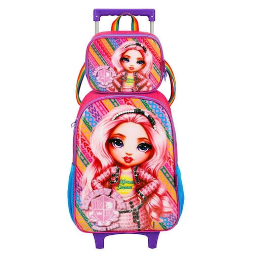 Kit Escolar Rainbow High Rosa Mochila De Rodas+ Lancheira