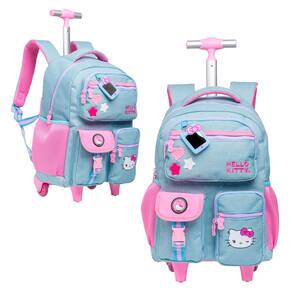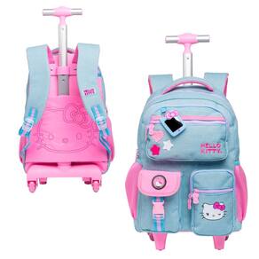 Características Mochila: - Confeccionada em Jeans - Alça de mão acolchoadas com mesh - Alças acolchoadas e ajustáveis - Dois bolsos laterais em mesh - Carrinho com haste em alumínio - Rodinhas em gel - Puxadores de zíper personalizados - Bolsos frontais com patch emborrachado e patch em chenille - Chaveiro com espelho Hello Kitty