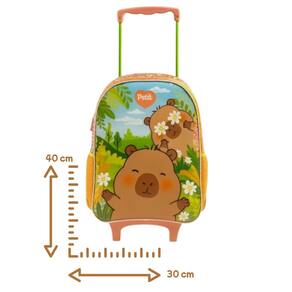 Kit Mochila de Rodas + Lancheira Térmica + Estojo Capivara Brownie Petit - Xeryus