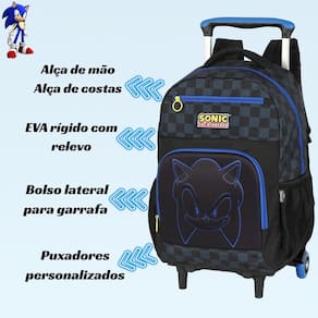 Mochila Rodas Sonic Juvenil Escolar Jogo Mala Meninos Preto