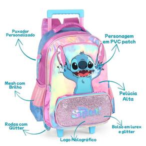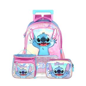 Mochila Rodas Stitch Disney Lancheira Estojo Box Holográfico