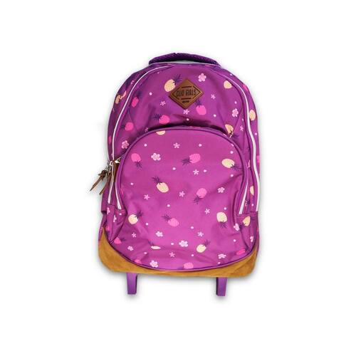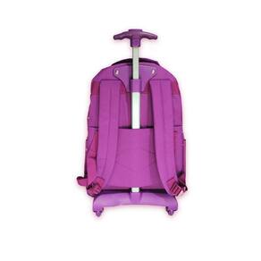 - cor roxo -alça para puxar o carrinho. - alça de mão acolchoada. - alça de costas reguláveis e acolchoadas, proporcionando um maior conforto para carregar a mochila. - na parte interna possui compartimento para notebook de até 15. - abertura principal com fechamento em zíper, e mais 2 bolsos frontais também com fechamento em zíper