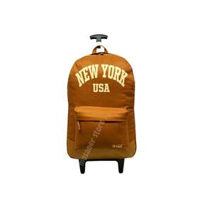 Mochila rodinha unissex nova york marrom adulto juvenil A mochila possui 2 compartimentos com zíperes e dois bolsos externos laterais. Espaço suficiente para carregar livros, cadernos e agenda, com rodinhas em gel resistentes e puxador em alumínio ideal para encarar a rotina do dia a dia. Pra quem quiser viajar a mochila é resistente já que possui costura reforçada, sendo o material em poliéster.