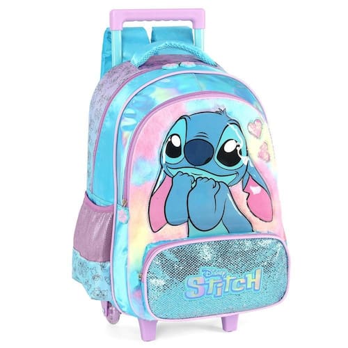 Mochila rodinhas 18 com alça stitch fluffy azul luxcel leve seu personagem favorito para seu dia a dia escolar a mochila de rodinhas com alça juvenil do stitch é super estilosa e fofa. Além da estamapa super adorável do stitch, a mochila tem detalhes em holográfico, pelúcia, paetê e tecido estampado. Os puxadores são personalizados com flores havaianas e feitos de borracha para conforto. Detalhes: - contém 1 bolso frontal pequeno, 1 bolso frontal grande, 2 bolsos laterais de redinha e 1 compartimento principal espaçoso. - 2 alças nas costas acolchadas e 1 alça de mão super confortáveis - 2 rodinhas de plástico transparentes resistente - medidas aproximadas: 80cm de comprimento com haste levantada / 47x36x20cm atenção: imagem meramente ilustrativa. Pode ocorrer mudanças no tom da cor da tela do celular/pc para o produto real ou mudanças na embalagem do produto sem aviso prévio por parte do fabricante. Marca: Não Informado