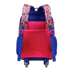 Sua mala com rodinhas no tamanho 16 possui um compartimento espaçoso para armazenar todos os objetos que precisam ser transportados para a escola. Além disso, seu carrinho em metal possui haste com ajuste de altura e rodinhas de silicone.