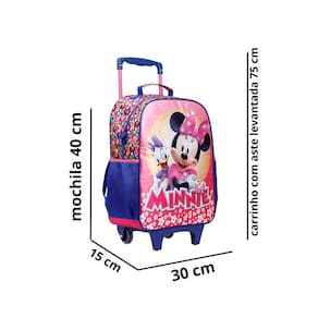 Mochila Com Rodinhas com alça nas costas infantil Escolar Minnie Disney Cor: Rosa Tamanho: único Genero: Unissex
