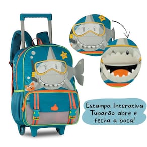 A Mochila de Rodinhas Infantil Masculina Tubarão TB25050K é perfeita para meninos que amam aventuras e estilo na rotina escolar. Confeccionada em poliéster resistente com detalhes em lona resinada, possui etiqueta de borracha e puxadores de zíper personalizados. Seu grande diferencial é a estampa interativa do tubarão que abre e fecha a boca, tornando a mochila divertida e única. O compartimento principal é espaçoso e ideal para livros e cadernos, enquanto os dois bolsos frontais, sendo um com zíper e outro com tampa e presilha, ajudam na organização do material. Os bolsos laterais telados são ideais para garrafinhas, garantindo fácil acesso. Versátil e prática, pode ser Utilizado como carrinho, com puxador em alumínio, rodinhas traseiras resistentes e base frontal de apoio, ou como mochila tradicional, com alças ajustáveis e acolchoadas. Dimensões aproximadas: 40x30x13cm. Marca: Não Informado Ean: 7899753559056