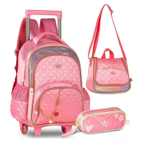 Contém: 01 un - mochila escolar de rodinhas sweet queen 2024 - rosa. 01 un - lancheira térmica sweet queen - rosa. 01 un - estojo sweet queen - rosa.