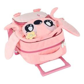 -Medidas: Altura: 43cm x Largura: 33cm x Profundidade: 16cm -Orelhas, pernas e mãos em pelúcia 3D. -Olhos e Nariz em plush bordados. -Apliques em 3D -As Faces do stitch e da Angel levantam, proporcionando interação com a Mochila. -Puxadores Personalizados -Rodas com Glitter -Capacidade: 23L