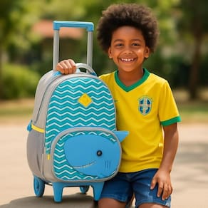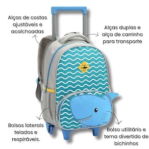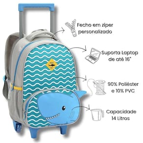 Mochila Rodinhas Zoop Seanite Escolar Infantil Azul Tubarão