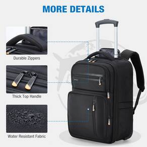 Especificações do produto: - Cor: preta - Tamanho: 12,59 x 7,48 x 17,71 polegadas / 32 x 19 x 45 cm - Peso: 2,5 kg. - Design de alça telescópica oculta. - A mochila com rodinhas pode abrir de 90 a 180 graus, o design macio facilita a embalagem. - Mochila com rodas resistentes e silenciosas e suaves - Zíperes de alta qualidade foram submetidos a 5.000 testes de tração para garantir que a qualidade possa ser usada por um longo período de tempo. - A mochila com rodinhas para adultos com rodas atende aos requisitos de tamanho da companhia aérea e pode ser transportada no avião sob o assento e no compartimento suspenso. - Compartimento principal da mochila de viagem com compartimento acolchoado separado para laptop que comporta laptops de até 17,3 polegadas, livros, roupas, guarda-chuva, garrafa de água e outros itens essenciais do dia a dia. Pode organizar itens essenciais de viagem de 3 a 5 dias - Mochila com dois bolsos organizadores frontais mantém os pequenos itens organizados e acesso rápido - Mochila de rolo feita de nylon de sarja 1680D resistente, resistente e resistente à água. - Alça de ombro larga e bem acolchoada e alças no peito aliviam seus ombros. - Com alça de bagagem, pode ser anexada à mala com rodinhas - Você pode carregar a mochila com a alça superior como uma bolsa de mão. - Adequado para trabalho, viagens de negócios, viagens, etc. Conteúdo da embalagem: 1 mochila com rodas. - Excelência do design: a mochila com rodinhas e alça retrátil oculta. Não apenas usada com uma alça para reduzir a carga nos ombros e na coluna; mas também pode ser usada como uma mochila tradicional. Esta versatilidade garante uma adaptação rápida e fácil a diferentes necessidades - A mochila com rodas tem capacidade de 30 litros para viagens de 3 a 5 dias. Inclui um compartimento principal com uma capa acolchoada para laptop de 17 polegadas, compartimento frontal com vários bolsos, esta mochila ajuda você a manter seus pertences bem organizados - Mochila de transporte – 32 x 19 x 45 cm, pesa 2,5 kg, serve na maioria dos requisitos da maioria das companhias aéreas, incluindo companhias aéreas econômicas, compartimentos aéreos ou sob o assento, tornando-a ideal para viagens domésticas e internacionais - Robusta e confortável – Mochila de rodinhas feita de nylon 1680D, resistente e resistente à água, protegendo seus pertences de respingos. Alças de ombro acolchoadas e painel traseiro proporcionam conforto para uso prolongado, adequado para uso diário e viagens longas - Prática e elegante – a mochila é ideal para viagens, negócios, viagens e faculdade. Seu design versátil o torna um ótimo presente para feriados e ocasiões especiais como Natal, Halloween, Ação de Graças, Dia das Mães, Dia dos Pais, Dia do Professor