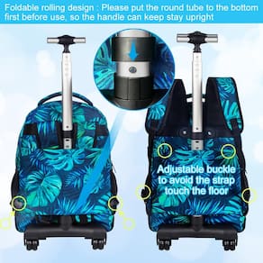 ZLYERT 3 unidades de mochila com rodinhas para mulheres e homens, mochilas com rodas para meninos e adultos, mochila de viagem com rodas, Folha verde, Moderno - Mochila com rodinhas 3 em 1: inclui uma mochila de rodinhas para meninos (48 x 33 x 20 cm, inclusa), uma lancheira e uma bolsa de lápis. A estampa de folha verde elegante é o presente ideal para familiares e amigos! - Mochila de rodas multifuncional: a parte inferior pode ser dobrada, para uso diário você pode alternar entre uma mochila de rodinhas ou uma mochila, e há alças elegantes na parte superior para decorações penduradas. - GRANDE CAPACIDADE: As mochilas com rodinhas contêm 2 compartimentos grandes separados e 3 bolsos frontais com zíper, seja um laptop para uso no escritório ou livros de papelaria para a escola podem ser facilmente acomodados. - Material durável: esta mochila com rodinhas para adultos é feita de material impermeável premium com costura roscada aprimorada nas costuras e alças respiráveis atualizadas para torná-la mais durável. - Mochila de alta qualidade com rodas: a mochila com rodinhas foi atualizada com uma base mais ampla e postes de liga de alumínio de alta resistência para garantir que você possa usá-la de forma mais confortável e suave.