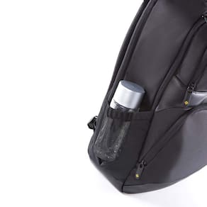 Possui compartimento principal com espaço acolchoado para laptop de 15.4", compartimento secundário com organizador e bolso de malha, bolso frontal com zíper, bolso lateral com zíper, bolso lateral de malha, parte traseira acolchoada, cinto para anexar a bagagem e ainda alça acolchoada.