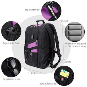 SHRRADOO Mochila extra grande para laptop de viagem de 52 L com porta de carregamento USB, mochila universitária aprovada por companhias aéreas, bolsa de trabalho de negócios, serve para laptops de 17 polegadas para homens e mulheres, roxo - Grande capacidade e organização: a mochila de viagem masculina possui 20 bolsos independentes para grande armazenamento e organização de itens pequenos. 3 espaçosos compartimentos principais com muitos bolsos ocultos que podem acomodar muitas coisas como material universitário, acessórios de viagem, roupas, artigos de papelaria, caderno, organizador de cabos, bolso lateral com zíper profundo para fácil acesso essencial, bolsos laterais elásticos para guardar convenientemente guarda-chuvas ou garrafas de água. - MATERIAL EXTRA GRANDE e DURÁVEL: Tamanho da mochila extra grande para laptop de viagem: 19,5 x 15 x 11 (polegadas), Capacidade: 50L, compartimento acolchoado separado para laptop de 13 polegadas, 14, 15, 15. Mochila/computadores para laptop de 6 e até 17 polegadas para mulheres e homens. A mochila inteligente de digitalização para laptop é feita de material de alta qualidade com forro de nylon para melhor resistência à água e resistente mochila grande para laptop para a cidade - Multiuso: desdobra a mochila extra grande livremente de 90 a 180 graus, projetada exclusivamente para viagens de avião. A mochila grande é perfeita para atividades internas/externas. Servida como mochila grande e durável, bolsa de trabalho de negócios, bolsa grande para laptop ou mochila universitária espaçosa, você pode usá-la em qualquer lugar para viagens internacionais, acampamento, caminhadas e viagens noturnas - Prático e conveniente: porta USB externa com cabo de carregamento integrado oferece carregamento conveniente para seu celular. Um orifício para fone de ouvido externo dá acesso fácil ao uso do fone de ouvido. Além disso, a mochila com uma alça robusta e resistente com cabo de aço na parte superior para transporte, as alças laterais de compressão mantêm a mochila exclusiva no tamanho que você precisar. Como uma mochila masculina/feminina, você vai gostar. É elegante, confortável e conveniente em todos os lugares - Confortáveis: mochila tecnológica com design de ventilação tridimensional em forma de U nas costas, alças de ombro de malha largas e respiráveis confortáveis com almofada de esponja abundante ajudam a aliviar o desconforto do seu ombro. Ambos os lados da alça de ombro com design de cordão, podem pendurar óculos de sol e outros pequenos pingentes. Bolsas de livros premium para homens, também mochila de computador para mulheres.