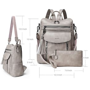 BOLSA DE MOCHILA SHRRIE PARA MULHERES; CARACTERÍSTICAS Material externo: couro PU de alta qualidade Tamanho: (C) 12,5 x (L) 12,5 x (A) 33 cm Peso: 900 g. Estrutura: 8 bolsos Mochila feminina leve para viagem com detalhes Design de mochila aberta superior Costura reforçada. Parte traseira da bolsa com costura reforçada para sua durabilidade. Material de alta qualidade. Todos os acessórios são feitos de liga metálica, anticorrosão, modernos e duráveis. Formas de transporte conversíveis A alça longa removível permite que a bolsa seja usada como bolsa de ombro ou mochila. - Material de alta qualidade – Mochila feminina feita de couro sintético macio e durável e forro de tecido, esta mochila de couro tem um fecho de zíper suave e durável e cada costura é reforçada para maior durabilidade. - Vários compartimentos – vários bolsos podem manter suas coisas bem organizadas. A mochila feminina tem 1 compartimento superior com fecho de zíper, 1 bolso interno com zíper, 2 bolsos internos, 3 bolsos frontais com zíper, 1 bolso com fivela magnética, 2 bolsos laterais e 1 bolso traseiro com zíper. - Bolsa de mochila no tamanho certo – o tamanho da mochila é de 12,5 x (L) 12,5 x (A) 33 cm, comporta confortavelmente um laptop de 14 polegadas ou menos, iPads de todos os tamanhos, revistas, guarda-chuvas, garrafas de água e outros itens pequenos. Você pode usá-la como uma mochila de uso diário ou como uma mochila de viagem. - Mochila multiuso – Existem três opções de transporte diferentes para várias ocasiões. Você pode usá-la como uma bolsa de ombro especial, uma mochila casual ou uma mochila elegante com alça superior. Ótima como uma bolsa de fim de semana, bolsa universitária, bolsa de viagem e bolsa de trabalho que pode guardar seus itens essenciais diários. - Presente para mulheres – Mochila de couro ideal para mulheres carregarem. Compras, viagens, encontros, caminhadas, parques de diversão, etc. Além disso, esta linda bolsa de ombro pode ser usada como presente de Natal para mulheres, presentes para mãe, presentes para avó, amante, amiga, filha e você mesmo para o dia das mães, Natal, Ação de Graças, aniversário, etc