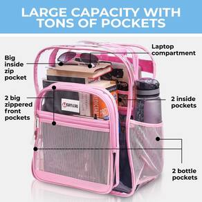Pegue sua grande mochila transparente da SHYLERO e aproveite: Capacidade espaçosa de 32 L – A 45 x L 35 x P 8 (A 45 x L 35 x P 20 cm) com bolsos laterais grandes expansíveis, três bolsos internos, a mochila transparente extra grande tem muito espaço para guardar seus itens com segurança Bloqueio antifurto aprovado pela TSA – para manter seus itens seguros. Tiras de segurança reflexivas para melhorar a visibilidade perto de estradas Costura reforçada e alças acolchoadas fazem dela a mochila perfeita para avião. PVC transparente resistente quando você precisa de tudo à vista À prova de congelamento até -10 °C. Três bolsos internos (um com zíper) – para uma organização adequada Bolsos frontais com zíper para armazenar suprimentos extras, como artigos de papelaria Zíperes YKK bidirecionais japoneses premium o tornam perfeito quando você precisa usar um cadeado Porta-chaves embutido para sua conveniência completa Elegante e multiuso – a mochila transparente resistente é perfeita para universidade, academia, praia, passeios, estádios ou qualquer outra rotina diária. Esta mochila transparente resistente é unissex e perfeita para todos Fácil de limpar – basta usar um pano molhado ou limpar Verificações de segurança rápidas – universidades, aeroportos, em qualquer lugar Melhor presente para qualquer ocasião – a mochila de ginástica transparente é ótima para todos Compre a mochila transparente grande da SHYLERO e receba suporte ao cliente vitalício – envie um e-mail 24 horas por dia, 7 dias por semana em relação a qualquer dúvida! - Capacidade espaçosa de 32 L – A 45 x L 35 x P 8 (A 45 x L 35 x P 20 cm) com bolsos laterais grandes expansíveis, três bolsos internos, a mochila transparente extra grande tem muito espaço para guardar seus itens com segurança. Tiras de segurança reflexivas para melhorar a visibilidade perto de estradas - Bloqueio antifurto aprovado pela TSA para manter seus itens seguros. Atualização de qualidade! - Costura reforçada e alças acolchoadas confortáveis fazem dela a mochila transparente grande perfeita para homens e mulheres. Ótimo para mães com bebês servirem como uma mochila transparente para fraldas - O bolso para laptop serve para computadores de 17 polegadas nessas mochilas esportivas transparentes extragrandes para a escola. A mochila transparente é unissex e perfeita para todos. PVC transparente resistente para ter tudo à vista. Espere que todas as verificações de segurança sejam tão rápidas quanto um raio. A mochila transparente para mulheres e homens é apresentada em cores diferentes - mochila rosa clara, mochila cinza clara, mochila preta clara, mochila azul clara, mochila roxa clara, mochila verde clara, mochila laranja clara, mochila transparente turquesa - Bolsos enormes com zíper interno e externo nesta mochila transparente extragrande para organização e armazenamento de suprimentos extras como canetas, livros, blocos de notas e qualquer coisa que seu dia possa exigir. Zíperes YKK bidirecionais japoneses premium para guardar seus itens com segurança em uma bolsa de livros - Porta-chaves embutido para sua conveniência completa – com seu design clássico, esta mochila transparente é perfeita para escola, universidade, academia, praia, passeios ou qualquer outra rotina diária. SUPORTE AO CLIENTE VITALÍCIA - envie-nos um e-mail 24 horas por dia, 7 dias por semana, em relação
