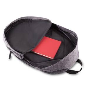 Mochila para em tecido poliéster com bolso frontal com zíper e alça de mão e ombro.
