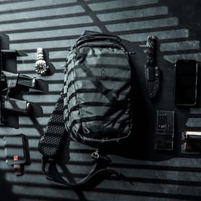 - Eberlestock A primeira bolsa tiracolo verdadeira, a Fade Sling, é dimensionada para acomodar pistolas de tamanho normal e PDWs ultracompactas (por exemplo, Flux Defense Raider).