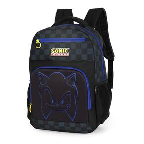 Destaques do produto: Estampa exclusiva com o rosto do Sonic em detalhe azul neon. Zíperes com puxadores personalizados em formato de anel dourado, cheios de estilo. Amplo compartimento principal + bolso frontal para melhor organização. Bolsos laterais em tela para garrafas e acessórios. Alças acolchoadas e reguláveis, garantindo conforto ao carregar.