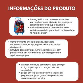 1 Bolso Principal e 2 Laterais para garrafinhas; Mochila de rodinhas e puxador resistente; Estampa Personalizada Spider Man e Miles Morales;