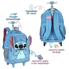 Mochila Stitch Rodas Meninas Viagem Peluciado Escolar Disney