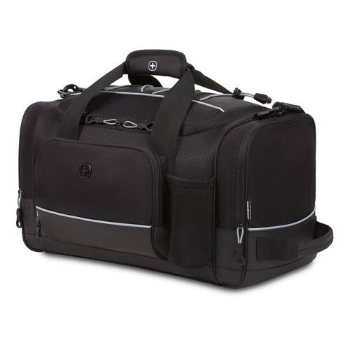 SwissGear Bolsa esportiva Apex para viagens e academia com sistema de cordão elástico, Dobby preto, Sacos de viagem Apex - Bolsa durável: a bolsa de viagem perfeita para homens e mulheres, esta bolsa de viagem versátil é feita de poliéster durável e resistente à abrasão, projetado para suportar uso pesado e condições adversas em várias viagens e aventuras - Armazenamento generoso: um compartimento principal grande, 2 bolsos nas extremidades e um organizador frontal para armazenar lanches, chaves e muito mais tornam esta bolsa de viagem ou academia perfeita para homens e mulheres; um bolso de garrafa de água de malha elástica mantém a hidratação à mão - Sistema de corda elástica: armazena facilmente itens como jaquetas leves ou guarda-chuvas; a bolsa esportiva perfeita para viajar, também possui alças superiores e laterais reforçadas para facilitar as manobras, além de uma alça de ombro removível e ajustável para mobilidade sem as mãos - Leve e resistente: 28 x 50 x 20 cm e apenas 1 kg, esta pequena bolsa esportiva elimina a preocupação de carregar uma bolsa de viagem volumosa, tornando-a uma das melhores bolsas de mão para aviões - Fecho de zíper seguro: mantém seus itens seguros e seguros dentro desta bolsa de fim de semana; não importa onde você vá, esta bolsa de bagagem robusta e confiável para viagem oferece tranquilidade e o conhecimento de que seus pertences estão protegidos