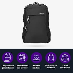 Marca: Targus Modelo: TSB968 Polegadas: 15.6 Capacidade: 27 L Material: Poliéster Largura do produto: 30.96cm Comprimento do Produto:42.47cm Altura do produto: 11.51cm Peso do Produto: 460.0g Tipo de Produto: Mochila Conteúdo da Embalagem:1 Mochila Garantia: 1 Ano