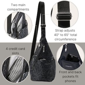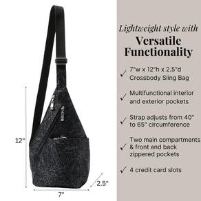 Baggallini Mini Sling, Flor da meia-noite - Estilo simplificado: Medindo 18 cm L x 30 cm A x 6 cm P e pesando apenas 227 g, esta mini mochila de viagem leve foi projetada para trabalhar com você, não contra você. - CONFORTO PERSONALIZÁVEL: Graças a uma alça transversal convenientemente ajustável, cuja circunferência total se estende de 101,6 cm a 165 cm, usar sua bolsa tiracolo para mulheres e bolsa tiracolo para homens nunca foi tão fácil. - Organização imediata: com 2 compartimentos principais, um bolso externo com zíper frontal e traseiro, 4 compartimentos internos para cartões de crédito e muitos bolsos, esta mochila tiracolo de viagem promete fácil acesso aos seus itens essenciais de viagem. - Viagem sem complicações: a bolsa tiracolo Mini Sling permite que você viaje com as mãos livres enquanto carrega seus itens essenciais para o dia. De tarefas a viagens de um dia, esta pequena mochila tem o que você precisa!