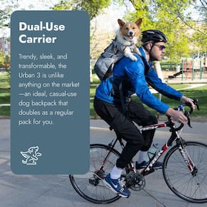 - Transportadora de uso duplo – Na moda, elegante e transformável, a Urban 3 é diferente de tudo no mercado — uma mochila ideal para cães de uso casual que funciona como uma mochila normal para você.